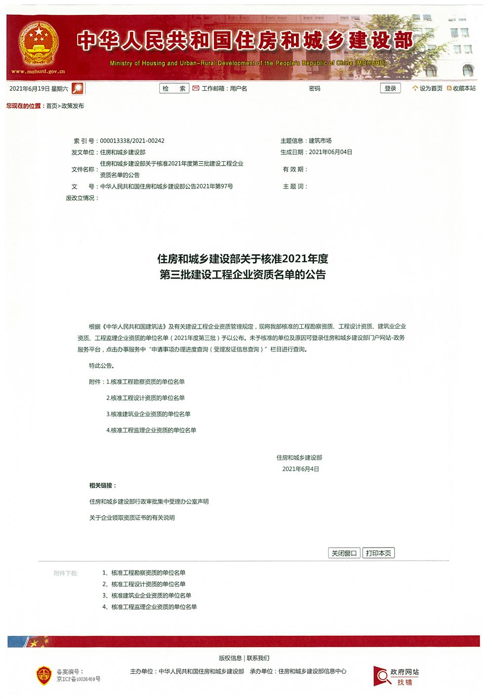 日前,由住建部核準(zhǔn)的2021年第三批建設(shè)工程企業(yè)資質(zhì)名單正式公布,博亞(福建)建筑設(shè)計有限公司通過住建部“建筑工程施工總承包壹級”資質(zhì)審批,這是繼福建省建筑設(shè)計研究院之后,福建省獲批的第二家工程設(shè)計企業(yè)。
