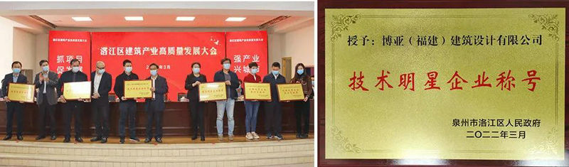 洛江區(qū)政府副區(qū)長王澤勇解讀洛江區(qū)建筑業(yè)發(fā)展扶持政策,并通報表彰了19家建筑業(yè)行業(yè)龍頭企業(yè),博亞(福建)建筑設(shè)計有限公司上榜,榮獲2021年度“技術(shù)明星企業(yè)”稱號。